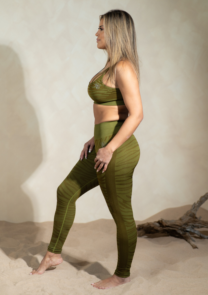 Vanity-Couture-Womens-Luxury-Athleisure-Fitness-Wear-Attire-Gym-Clothing-Destiny-Seamless-Zebra-Print-Sports-Leggings-Tights-In-Metallic-Sparkly-Forest-Army-Green