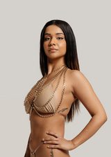 Master the art of being beach royalty with the ‘Antica Luxury Gold Chain Cover Up Necklace'. Made from decadent shiny gold chains, beautifully cascading across the bust. This style is perfect to wear with any swimsuit. Whether you pair it with your favourite nude bikini or a form fitting one piece, this swim accessory is the ultimate statement piece. One size fits most with adjustable chain length closure behind the neck.