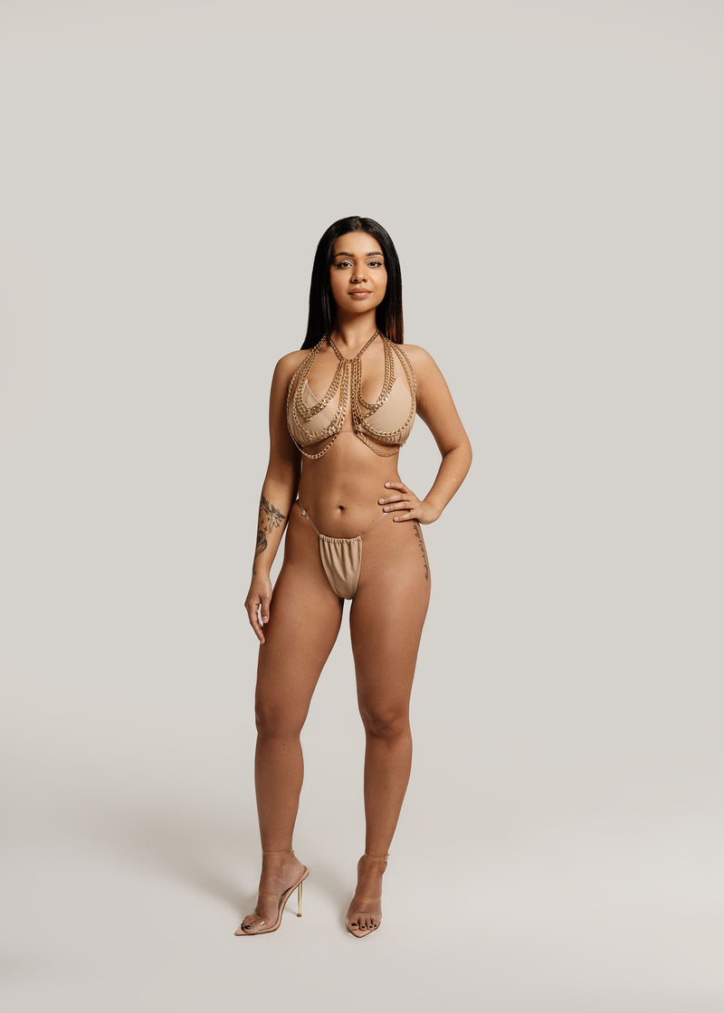 • A luxury swimsuit accessory: the ‘Cleopatra Luxury Gold Chain Cover Up Dress’ is made from premium quality gold chains.