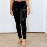 Street casual, meet fashionista glam. These luxury velvet sweatpants are lavishly embellished with golden studding. They have a loose-fit leg that’s oh-so-comfy, but gathered in at the ankle to draw attention to your shoes. And here’s the best bit of all: they have pockets! Though these sweatpants make a killer statement all on their own, they’re even better when paired with a matching sweater or hoodie from our velvet tracksuit collection.