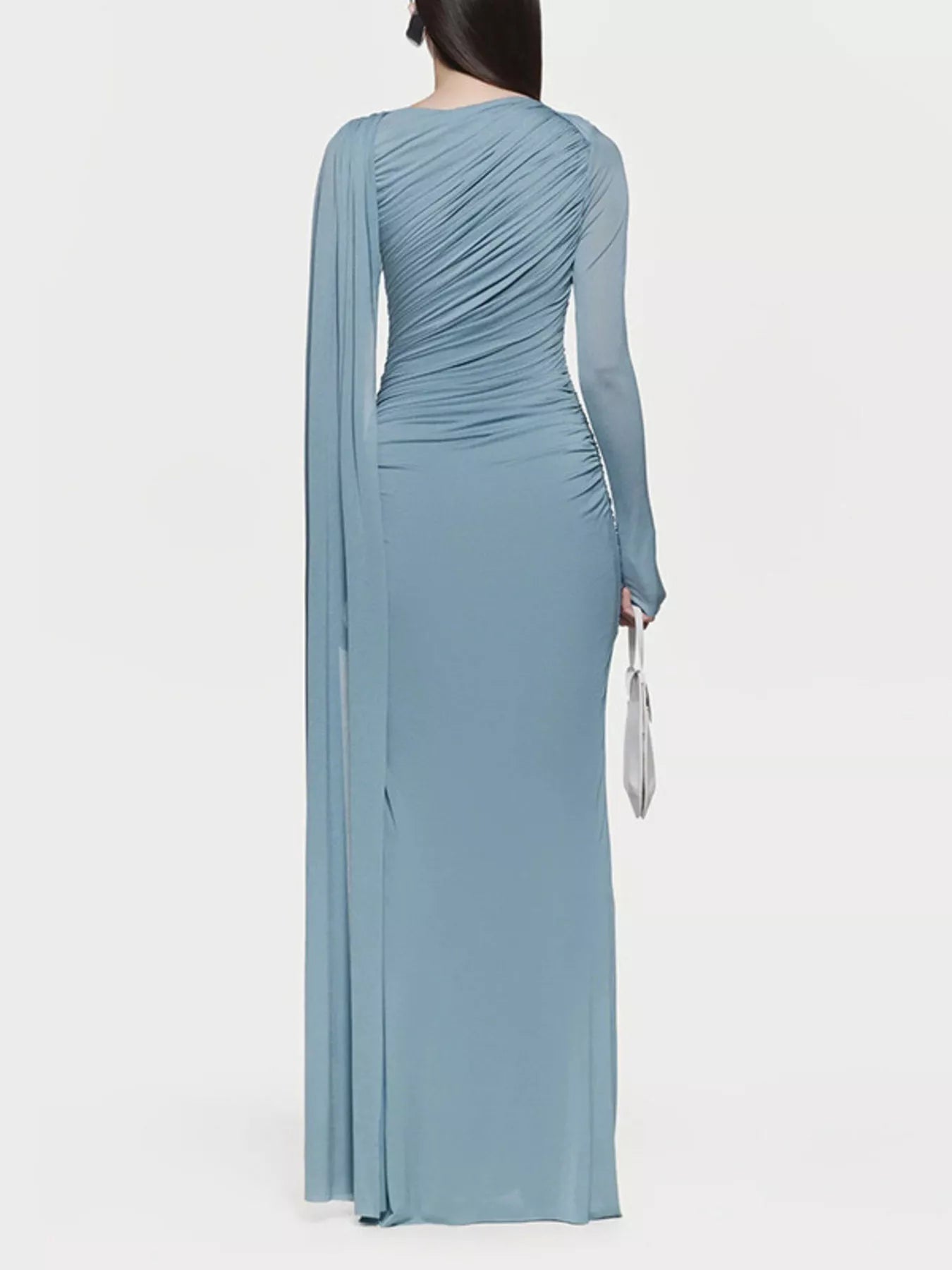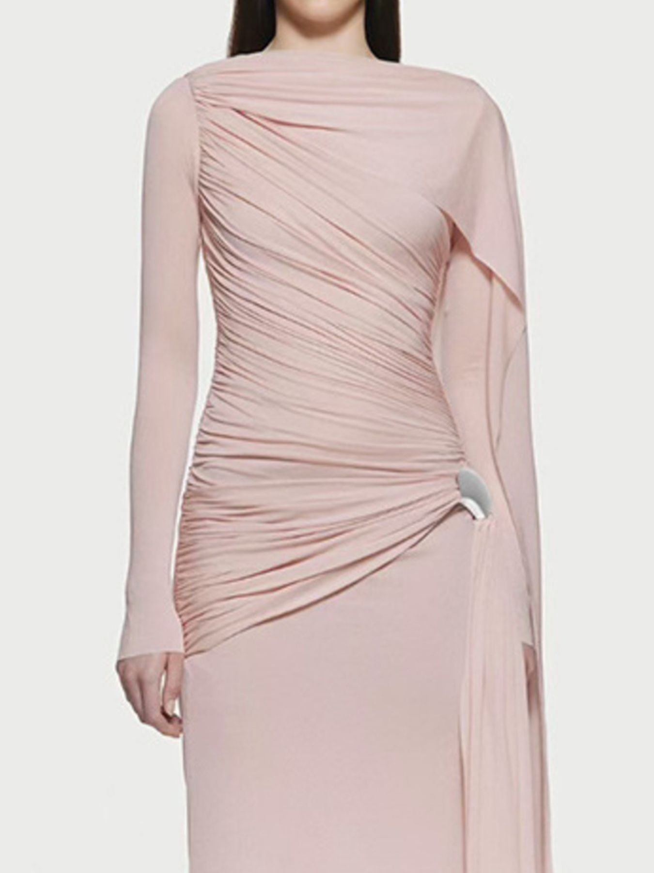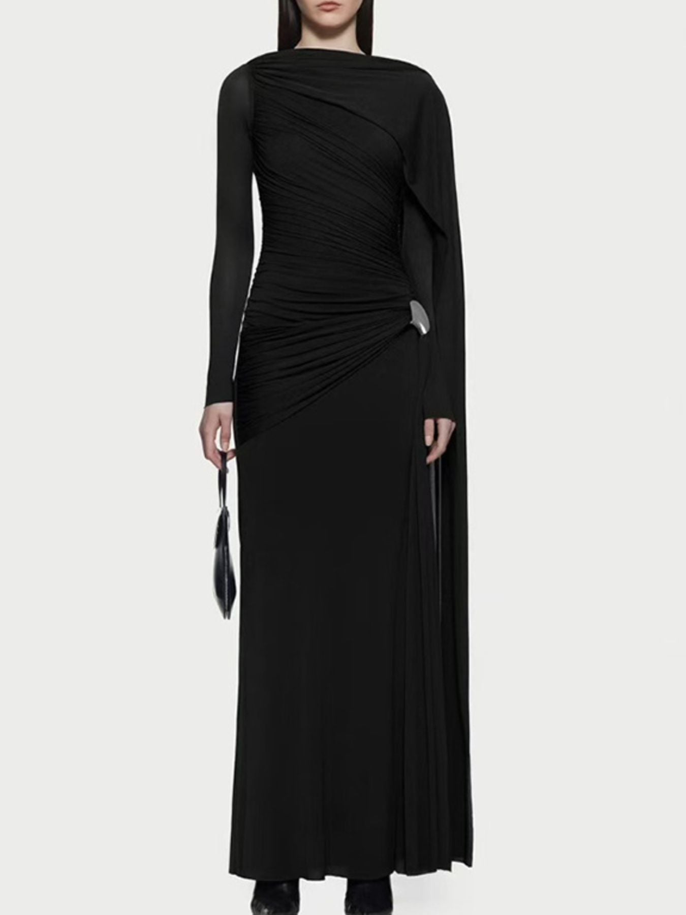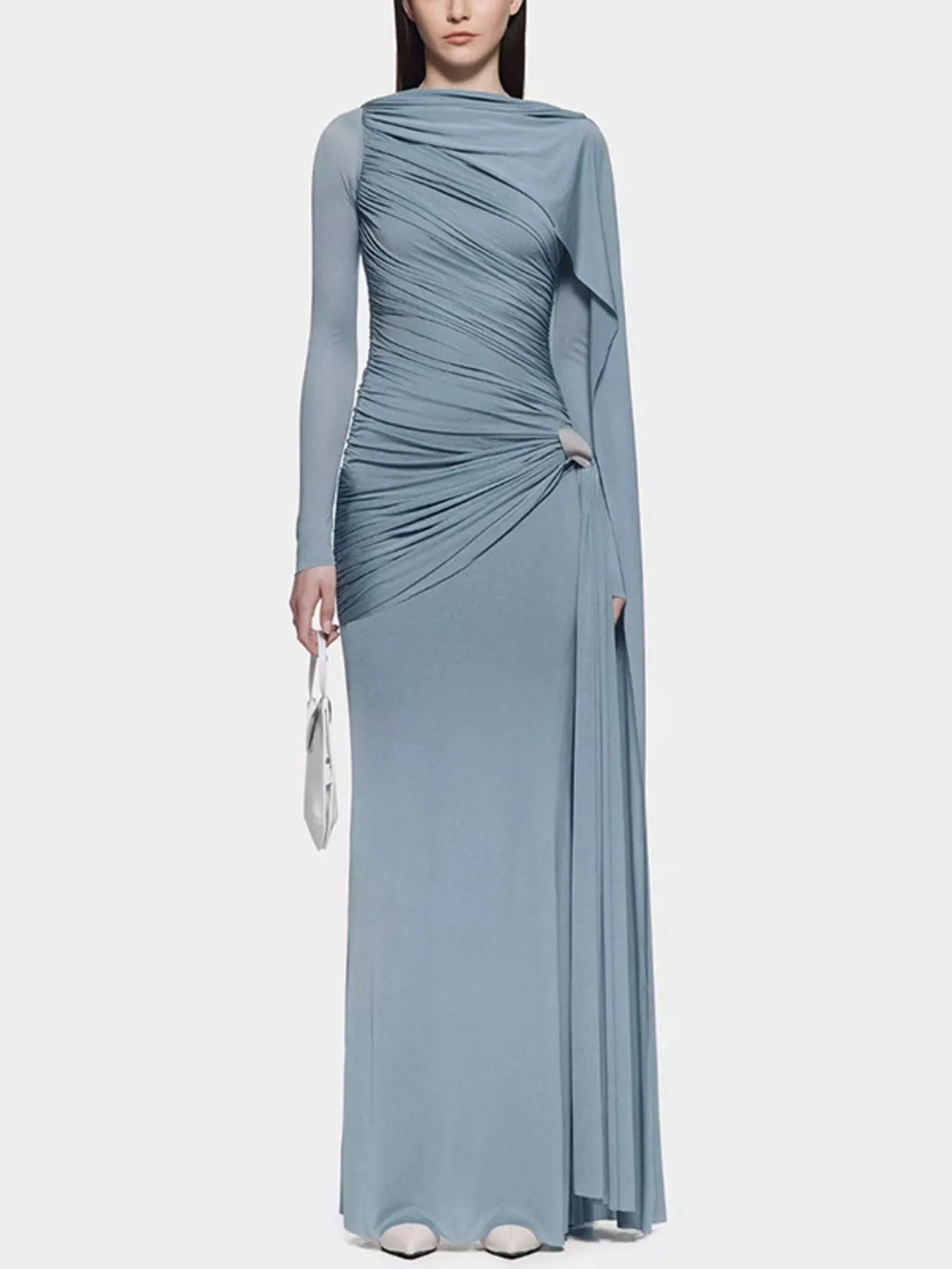 Ruched Draped Long Sleeve Maxi Dress