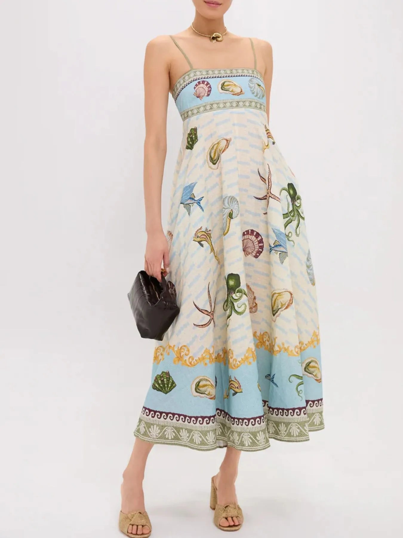 Ocean Print Spaghetti Strap Midi Dress