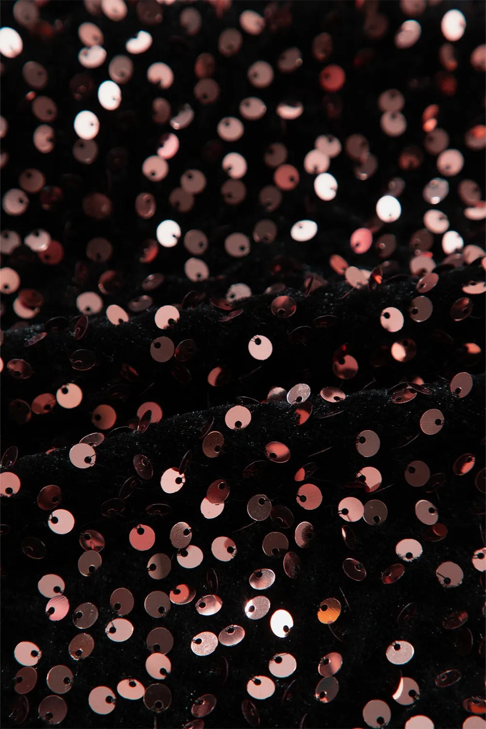 Illuminate every entrance in this sequin round-neck long sleeve blouse, designed to captivate under evening lights. The lustrous, textured finish feels sleek against the skin while the elegant open-back detail adds a subtle dose of allure. Style it with tailored trousers or a satin skirt for an effortlessly elevated look.