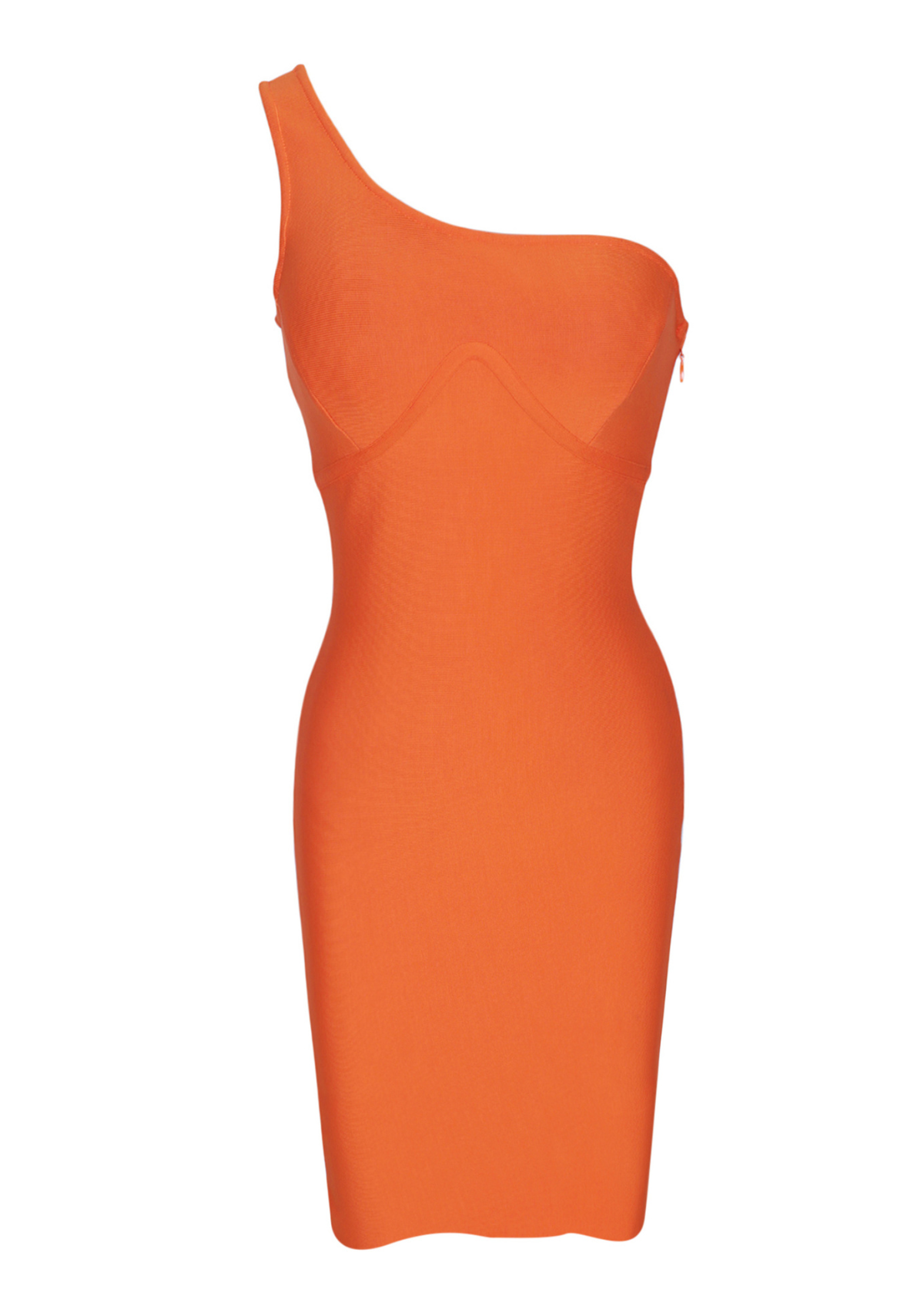 Alicia - Robe mi-longue moulante à une épaule - Orange
