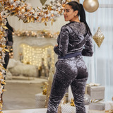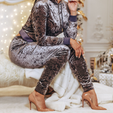 Notre version glamour des vêtements de sport, ce sweat à capuche zippé a une coupe décontractée pour se détendre facilement. Il est fabriqué à partir d'un tissu en velours de première qualité, doux et extensible, et entièrement orné de clous dorés. Un mélange exquis de confort décontracté, de style chic et de qualité haut de gamme. Associez-le à l'un des pantalons assortis de notre gamme de velours pour compléter votre survêtement.