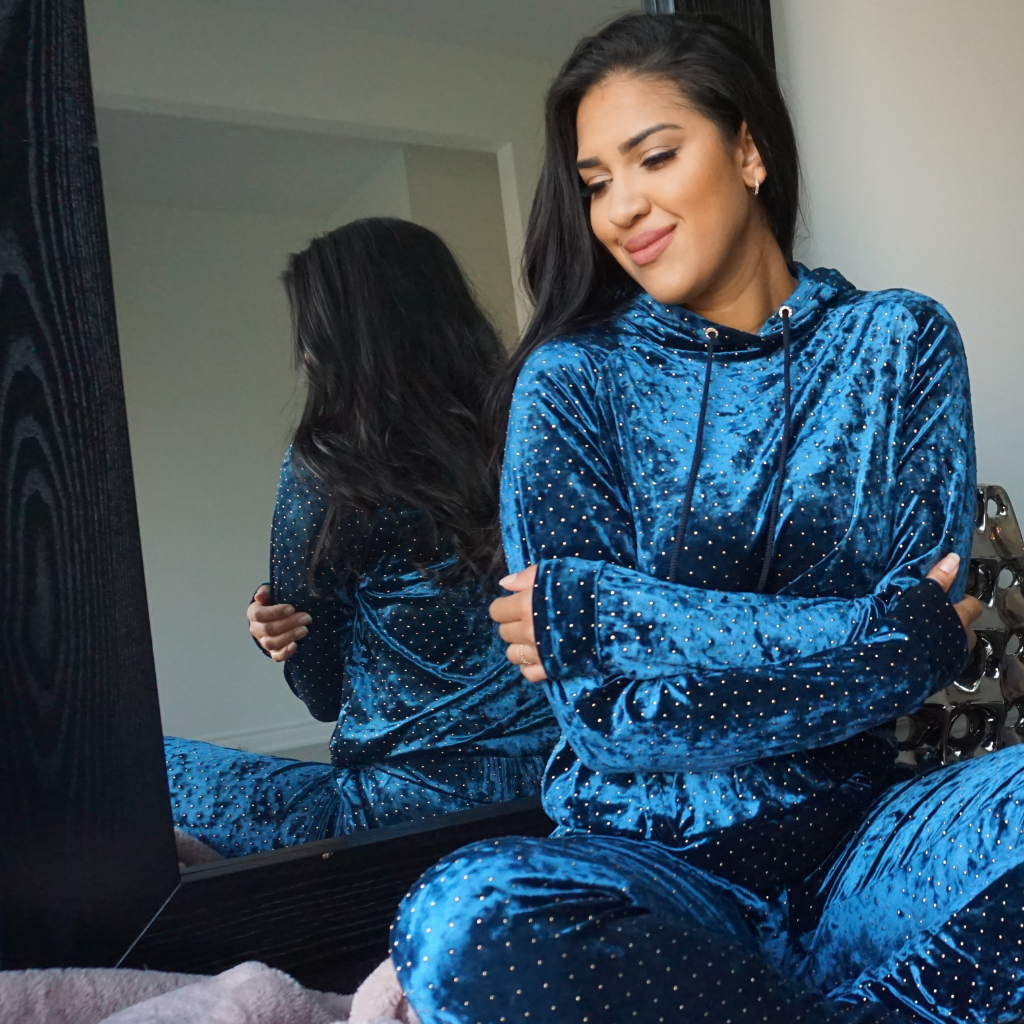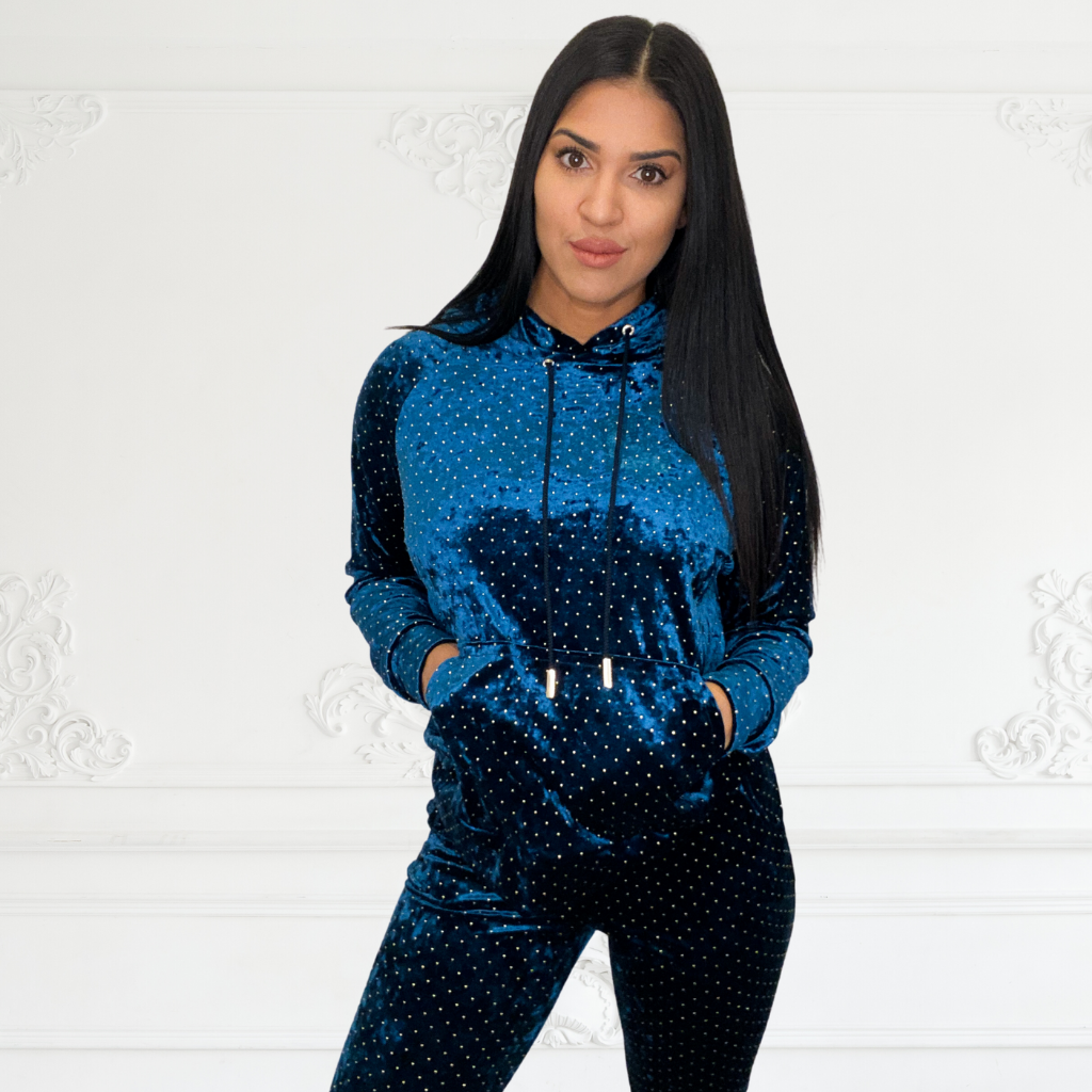 Chic, cool et intensément confortable - c'est le sweat à capuche parfait ! Cette pièce sur la tête a une coupe décontractée et spacieuse qui garde les choses décontractées. Cependant, nous l'avons fabriqué à partir de velours extensible et doux au toucher avec des perles dorées, pour élever le design au-delà de la base. Il est doté d'une grande poche kangourou sur le devant, pour garder votre téléphone à portée de main ou simplement pour garder vos mains au chaud pendant que vous vous détendez à la maison. Portez-le avec l'un des pantalons assortis de notre gamme de velours pour un look complet.