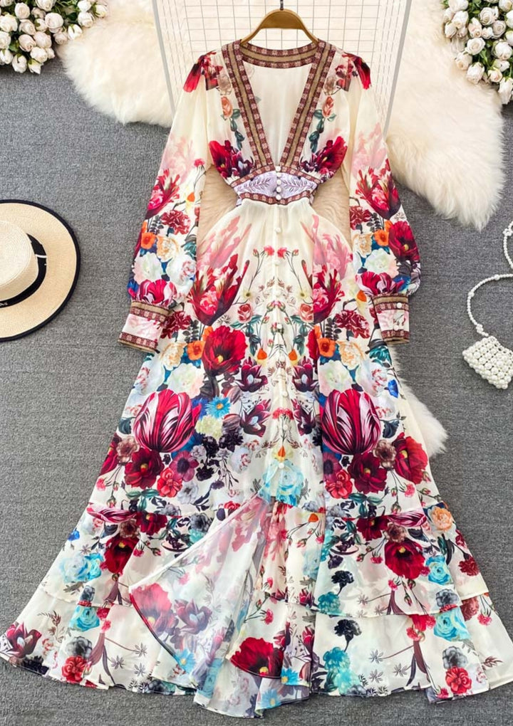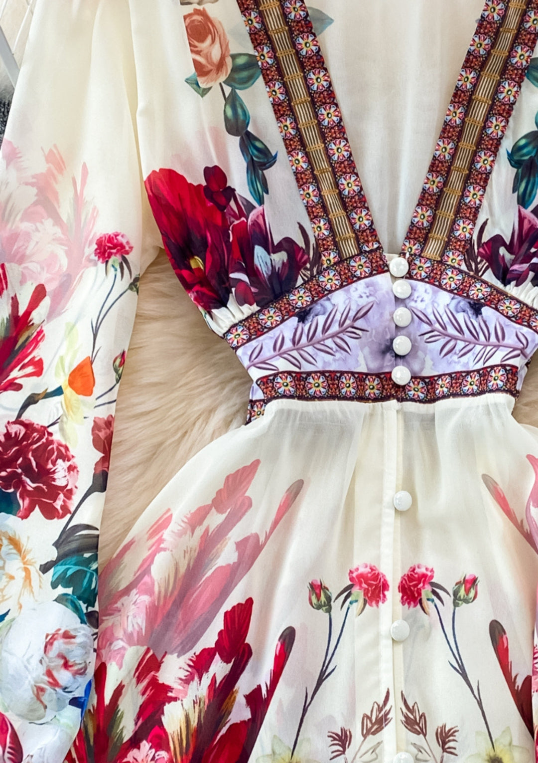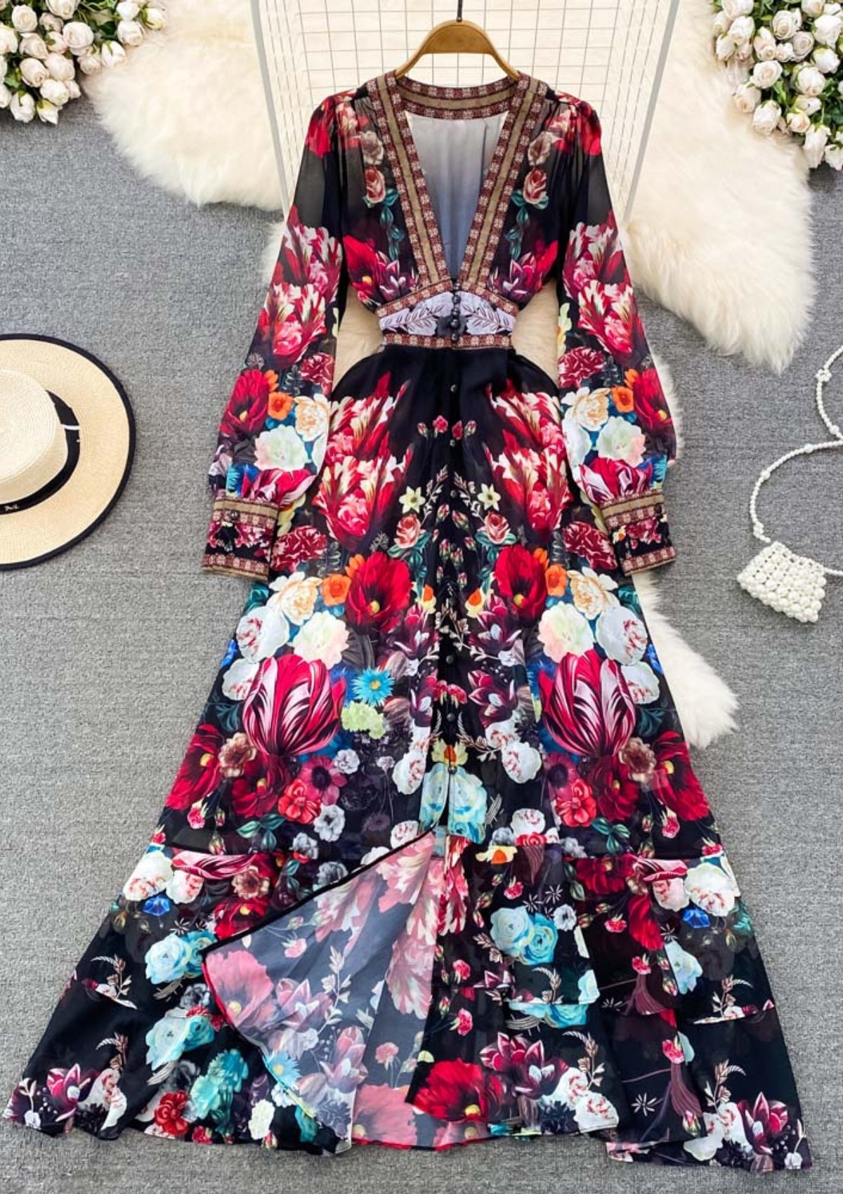 Sarafina Elegant Floral Print Cut Out Maxi Dress - Vanity Couture